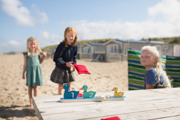 Net als op de kermis! Eendjes gooien met pittenzakjes. Goed voor samenspel, beurtnemen en motoriek te oefenen.