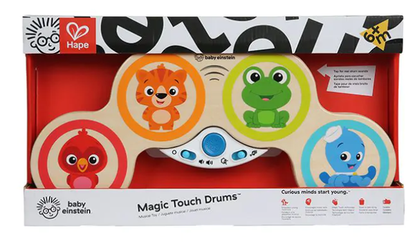 Met deze magische speelgoed trommel met magische toetsen maken kinderen de mooiste beats. De 'magische' toetsen zijn in het hout verwerkt en door een van de 4 dieren licht aan te raken kunnen kinderen al verschillende tonen spelen. Na een beetje oefenen spelen ze al een eigen beat! De magic touch trommel heeft meerdere toepassingen, er kan bijvoorbeeld tijdens een melodie mee gedrumd worden en alle 4 dieren maken ieder 3 verschillende geluiden.
