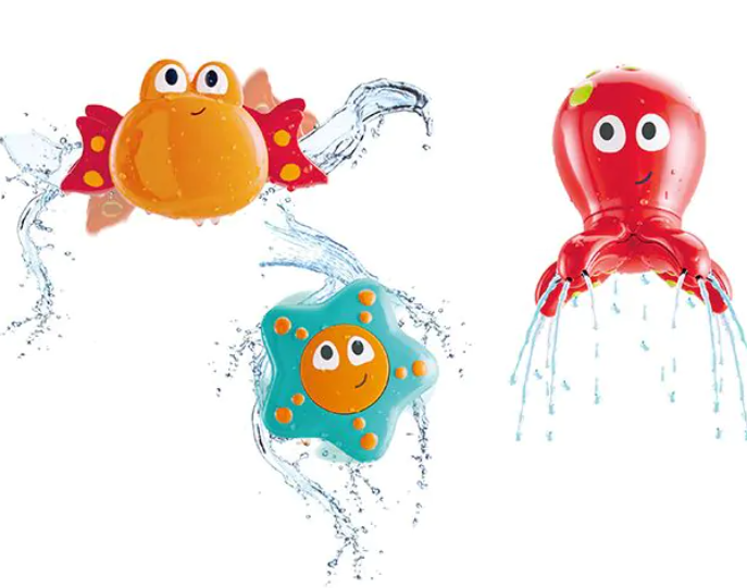 De krab schommelt van links naar rechts wanneer er water op wordt gegoten, waarbij water wordt verdeeld uit beide klauwen en zodat ie lijkt te dansen. Giet water in de octopus en het giet uit zijn tentakels.