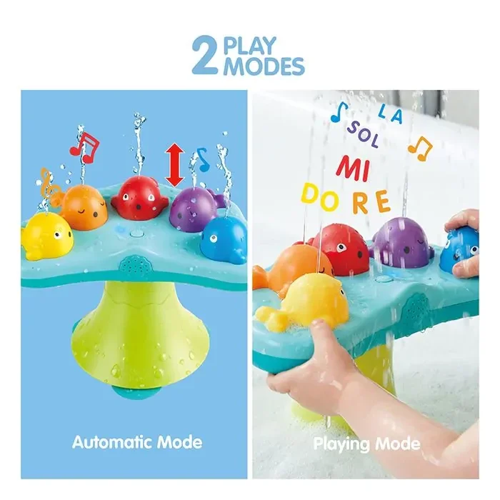 Is jouw kindje gek op water of muziek, dan is zijn deze walvissen een succes! Laat het water dansen op de muziek.