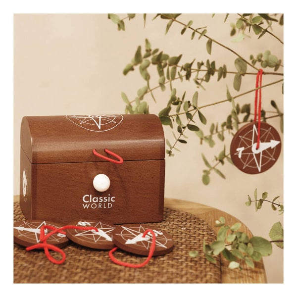 Zet met de 10 houten kompassen de route uit naar de schatkist. Wat zou er in zitten? De keuze is aan jou.