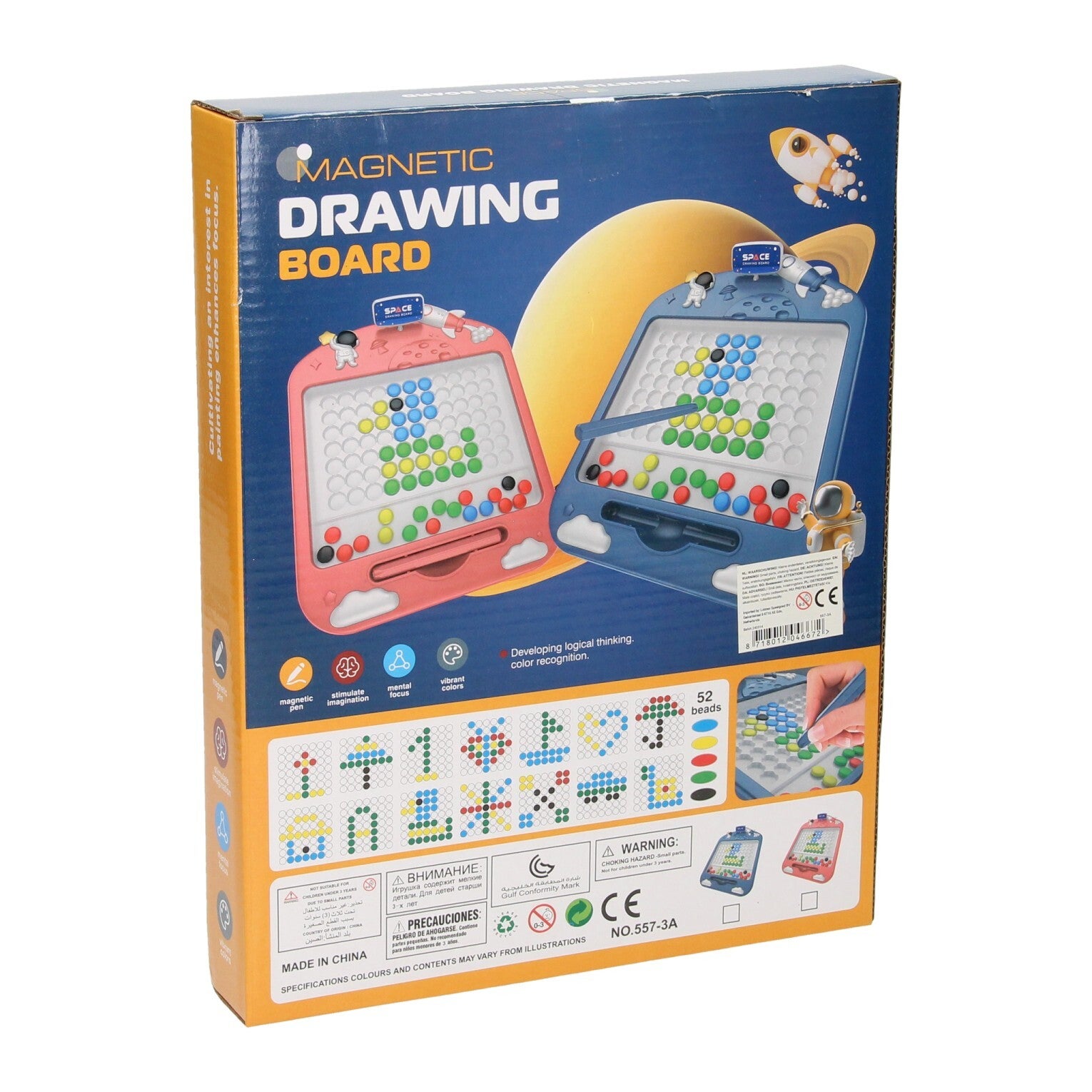 Met dit magnetische tekenbord maak je mooie patronen en eigen creaties. Met de pen pak je de magnetische steentjes op en plaats je die op het bord.