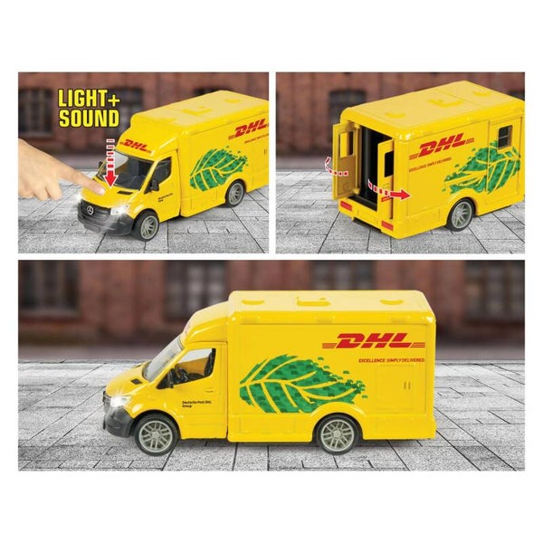 Wordt pakketbezorger! Een belangrijke baan, want iedereen wil zijn pakketje zo snel mogelijk ontvangen. Dat kan met de DHL-bezorgbus van Majorette. Deze Mercedes-Benz Sprinter heeft openslaande achterdeuren, rubberen banden en realistische licht- en geluidseffecten.