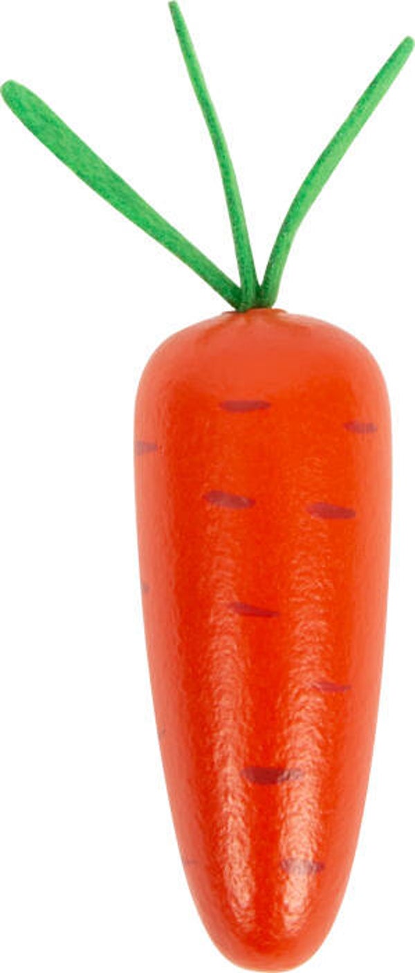 De houten wortel oogt realistisch door de groene vilten stukjes aan de bovenkant.
